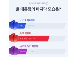 구체적으로 살펴보면 탄핵 당한다는 의견이 65%로 가장 많았고, 즉각 하야를 요구하는 목소리도 16%에 달했다. 반면 임기 완료를 지지하는 의견은 19%였다.