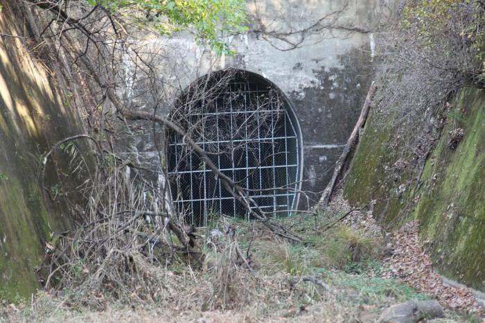 터널입구는 철 구조물로 막아 놨다. 선로는 터널이나 밖에도 보이지 않는다.