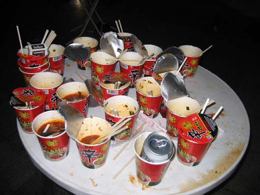 가장 먼저 눈에 띄는 건, 떡볶이나 닭 뼈 짜장 등이 그대로 들어있던 배달 음식 용기와 국물이 찌든 컵라면 용기다. 모두 재활용이 불가하다. 선별장의 한 직원은 "포장 용기는 음식물이 비워진 깨끗한 상태여야만 재활용 할 수 있다"며 "코로나19로 배달이용이 많아져서인지 음식물을 함께 버리는 사례가 많아졌다"고 토로한다.