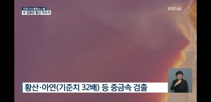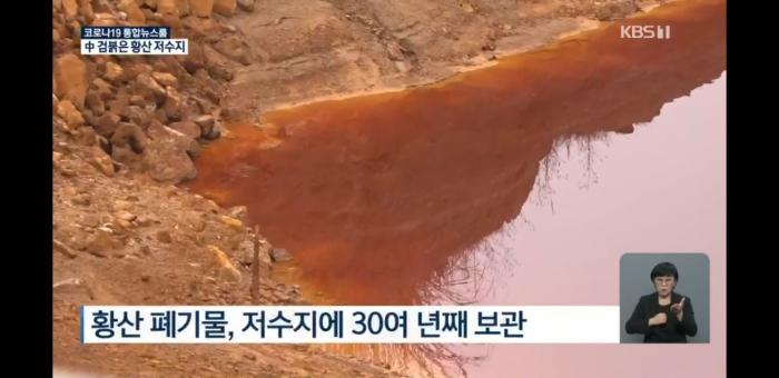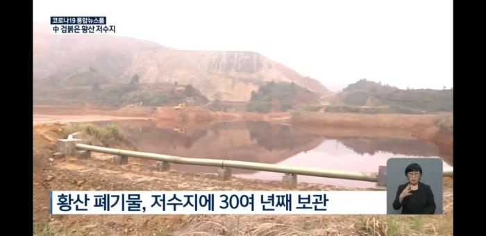 그런데 물이 모두 검붉은 색입니다. 물 색깔이 이런 건 그냥 물이 아니라, 황산 폐기물이 들어 있기 때문입니다. 중국 환경당국 조사 결과, 이 황산 폐기물에선 황산 외에 기준치보다 최대 32배 많은 아연 등 중금속도 대량 검출됐습니다. 이곳엔 이런 저수지가 네 개나 있습니다.