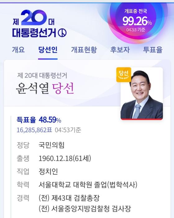 [속보] 윤석열 대한민국 20대 대통령 당선