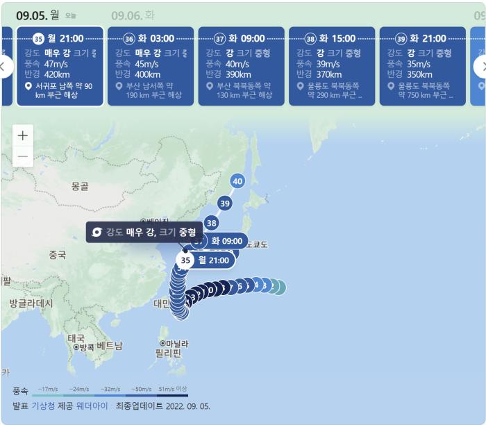 여객선을 비롯해 46개 항로, 66척의 운항이 전면 통제. 윤석렬대통령은 용산 집무실에 머물며 철야 비상근무에 돌입