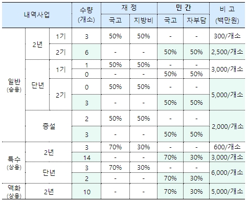 다양한 방식의 수소충전소를 지원하기 위해 올해부터 도입한 특수용(버스, 트럭 등) 액화수소 충전소를 올해 5곳에서 확대하여 내년에는 10곳을 선정할 계획이다.