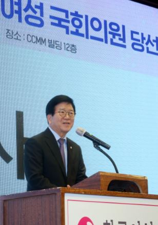 박 의장은 이어 “제헌 국회때 여성의원이 한 분도 안계셨고 두 자리 수가 넘었던 첫 기록이 12대 국회였다”면서 “이번 21대 국회에서 쉰일곱 분의 여성 국회의원 당선이 어찌보면 장족의 발전이지만 한편으로 보면 아직도 우리 사회의 유리천장이 너무 두껍다는 것을 체감하게 된다”고 말했다.