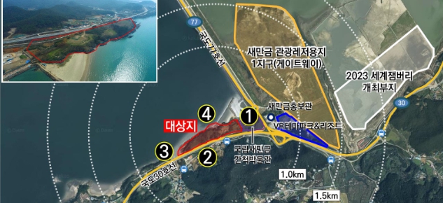 해당 사업부지는 새만금홍보관 및 국립새만금간척박물관과 인접하여 시설 간 시너지 효과가 극대화될 것으로 예상되며, 1호방조제를 중심으로 새만금의 새로운 문화관광산업지대가 형성될 것으로 보인다.