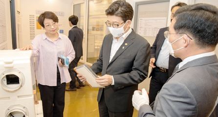 조명래 환경부 장관은 6월 18일 오후 서울 노원구에 위치한 에너지제로(EZ) 주택 홍보관을 방문해 건물부문 온실가스 감축과 주거비 부담 절감을 위해 에너지 사용량을 단지 내에서 직접 생산하도록 설계된 국내 최초 제로에너지 공동주택을 둘러봤다.
